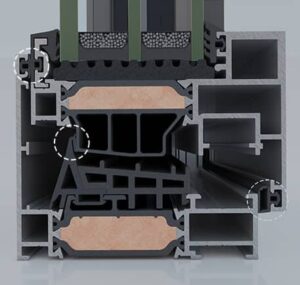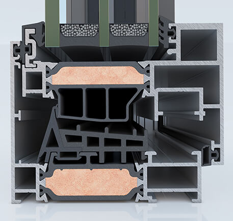 Σε όλα τα προφίλ του συστήματος εφαρμόζονται μονωτικές ράβδοι πλάτους 42mm με υαλοενίσχυση 25%, προσφέροντας υψηλά επίπεδα θερμομόνωσης και εξαιρετική στατική αντοχή.